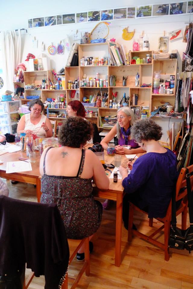Peu importe votre âge ou expérience préalable en art, vous êtes toutes et tous invité.e.s à venir utiliser notre vaste sélection de matériaux d'art récupérés (peinture, dessin, couture, tricot, collage, bijoux, arts d'impression, sculpture, techniques mixtes, etc.), pour vous exprimer et créer tout ce que leur imagination vous permet d'inventer, durant les heures d'atelier libre.